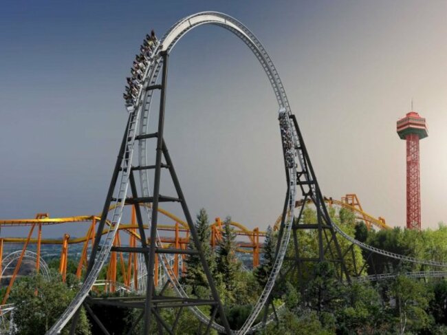 Opening this summer at Six Flags Magic Mountain in California, Full Throttle is going to set the record as the world’s tallest loop-de-loop at 160 feet in the air. It will also catapult riders from zero to 112 kph in the air on two forward launches.