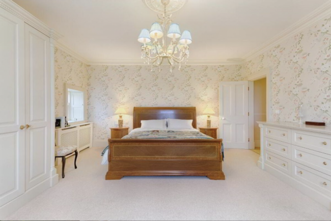 The upper floors include the main bedroom suite with its luxurious en suite bathroom and fitted furniture. Three more bedrooms are located on the first floor, with three more bedrooms and a family bathroom on the second floor.