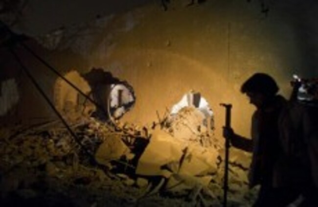 A house at the site of a NATO missile attack in which Gaddafi's youngest son, Saif al-Arab Gaddafi, and his three grandchildren were killed. Darko Bandic/AP/Press Association Images