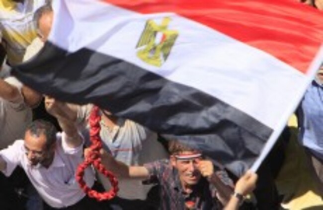 An protester holds a noose under an Egyptian flag in Tahrir Square Amr Nabil/AP/Press Association Images
