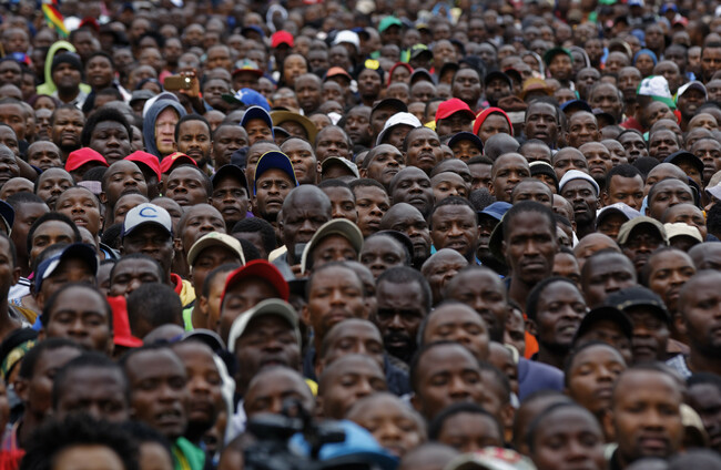 Protesters gather at a demonstration of tens of thousands at Zimbabwe Grounds in Harare, Zimbabwe.