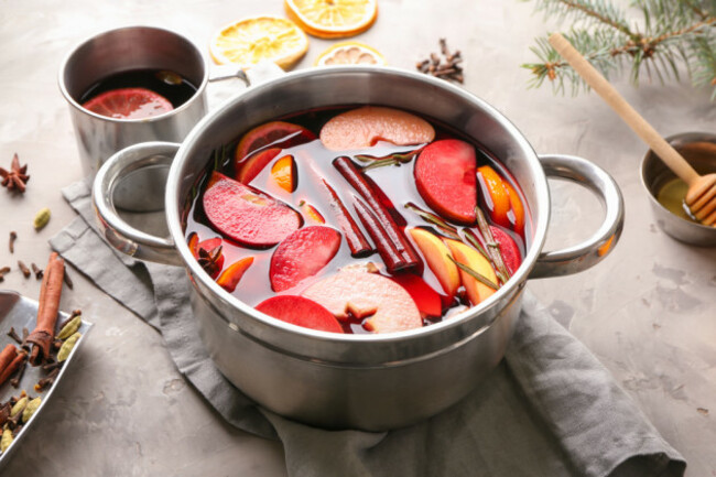 Mulled wine is a firm favourite this time of year, but why not try mulled cider? Start by pouring one litre of Irish cider into a pot. Add 40g of brown sugar, a glass of dark rum, 400ml apple juice and 2 cinnamon sticks. Take 2 satsumas halved and stud with 4 whole cloves, add to the cider mix. Bring slowly up to nearly boiling but not quite. Don’t allow to boil as this will impair the taste, not to mention evaporate the alcohol – and that would be tragic. Keep warm and serve in mugs, your guests will love it.