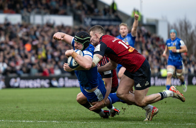 WHEN MUNSTER NOTCHED their bonus point try with just 50 minutes gone, their travelling fans could have been forgiven for breathing a little easier. 24-13 to the good at Sandy Park, it seemed at that stage that Graham Rowntree’s men might be able to close this one out in relatively comfortable fashion.