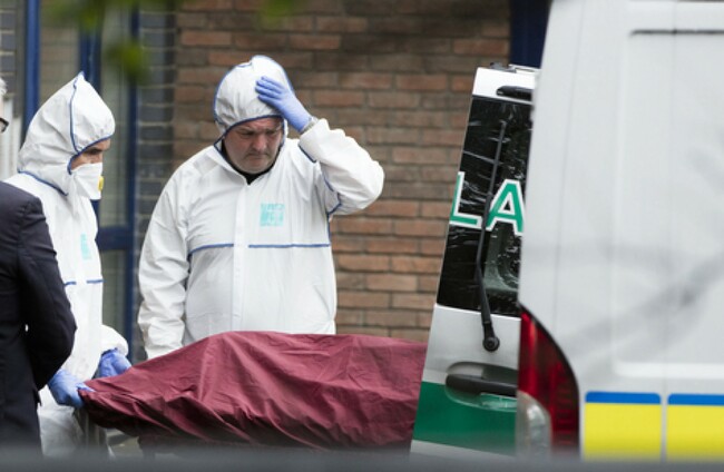 A member of the Garda Forensic Team looks on as the body of the three-year-old boy is placed in an ambulance on Tuesday. Eamonn Farrell/RollingNews.ie