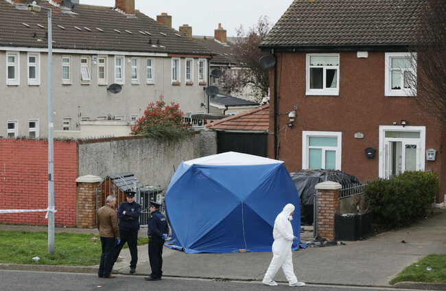 Gardai and Garda Forensics investigating a fatal shooting which occurred in the front garden of a house at Foxdene Avenue. RollingNews.ie