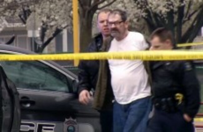 Frazier Glenn Cross is escorted by police after the shootings. AP Photo/KCTV-5