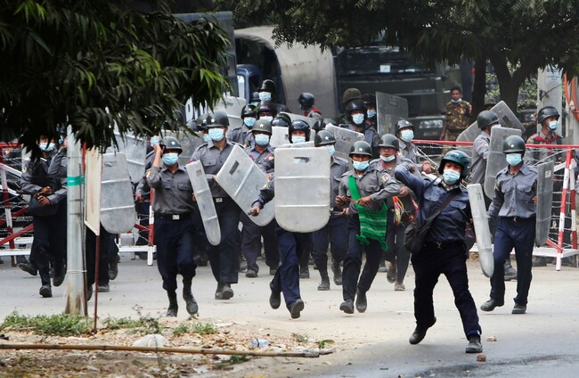 Security forces had been increasing their pressure against anti-coup protesters earlier on Saturday, using water cannons, tear gas, catapults and rubber bullets against demonstrators and striking dockworkers in Mandalay.