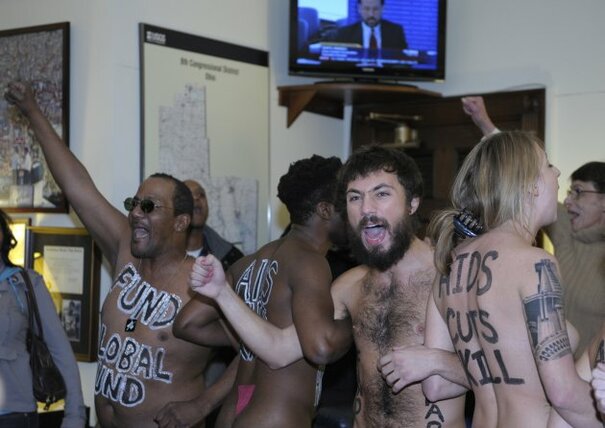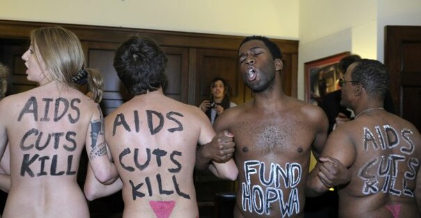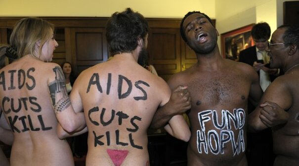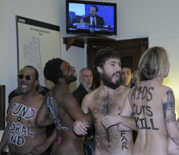 Naked protesters occupy Washington office over possible AIDS cuts