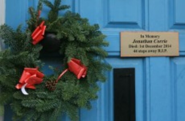 A plaque in the Molesworth Street doorway where Jonathan Corrie died. Leah Farrell/Photocall Ireland