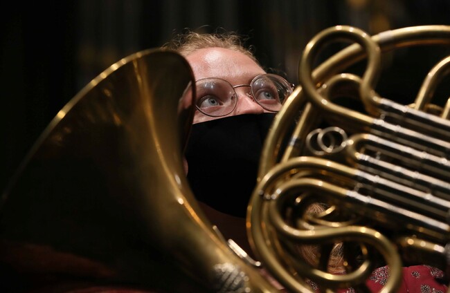 French horn player Hannah Miller is pictured rehearsing ahead of tonight's concert. Mark Stedman