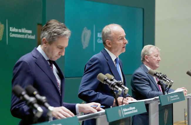 The announcement was made at Government Buildings by Taoiseach Micheál Martin, Tánaiste Simon Harris and independent TD Seán Canney.