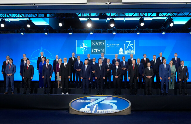 At the pomp of the three-day gathering in the US capital, President Joe Biden individually welcomed the other 31 leaders of the alliance.
