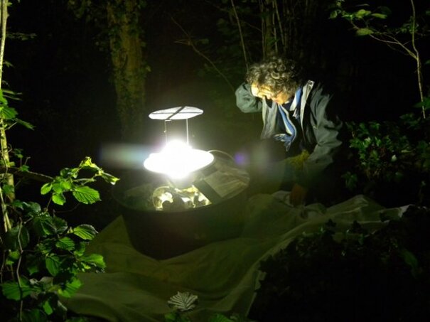 Penny Bartlett with moth trap (Photo: rRTE/ L. Weekes)