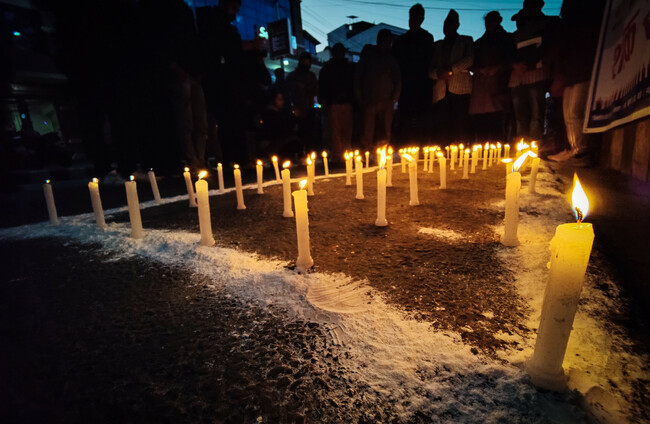 Nepali people in Kathmandu participate in a candlelight vigil to pay respect to the people killed in the plane crash Sunil Sharma/PA Images