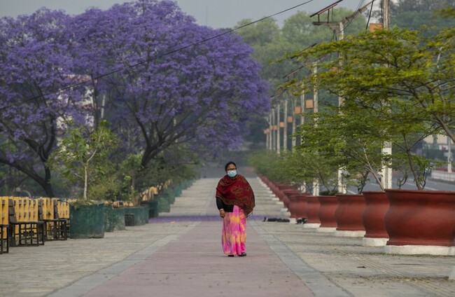A Nepalese woman walks on a deserted street during the first day of lockdown in Kathmandu, Nepal Niranjan Shrestha via PA Images