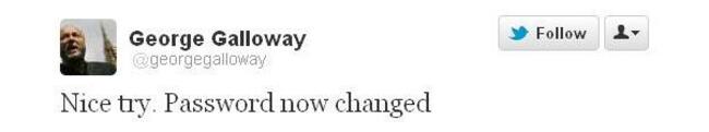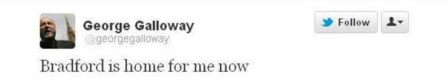 The tweet remained online some three hours later as Galloway quickly sought to clarify that “Bradford is home for me now” before rather cryptically tweeted: “Nice try. Password now changed”.