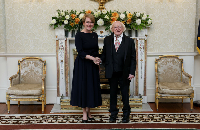 Presidenti Michael D Higgins with the new British Ambassador to Ireland Kara Owen