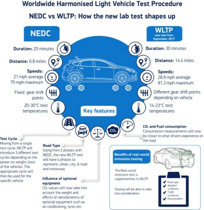 Here’s how the new WLTP test differs from the old NEDC test, in a graphic. To view a larger version tap here.