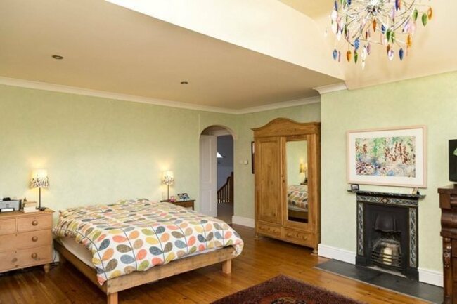 The master bedroom is en-suite with a dressing room and a balcony facing east.