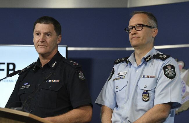 Australian Federal Police, Acting Deputy Commissioner Ian McCartney and Victoria State Police Deputy Commissioner Shane Patton James Ross via AP