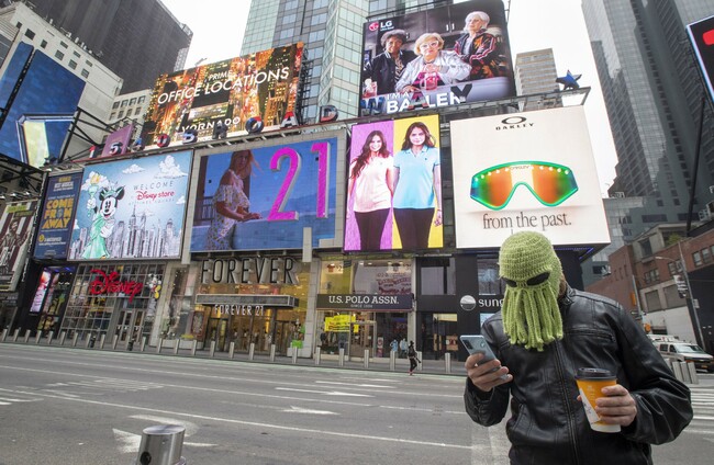 A man wears an octopus hat in New York's Times Square. Mary Altaffer/PA Images