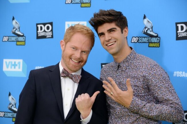 Jesse Tyler Ferguson, left, and husband Justin Mikita on July 31 in Los Angeles. Pic: Jordan Strauss/Invision/AP