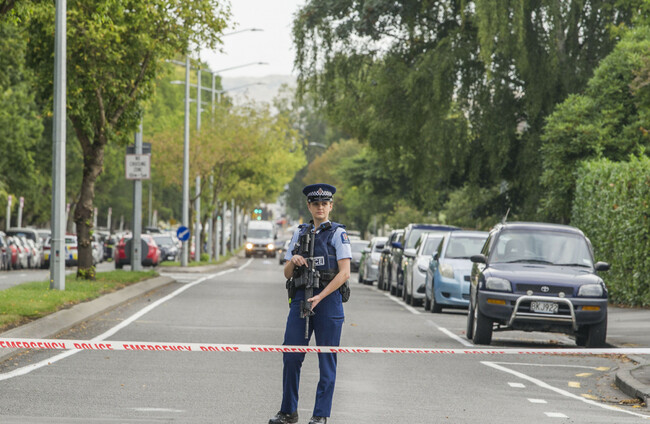 Armed police seal off street to the Masjid Al Noor mosque, one of two mosques the gunman attacked on 19 March, 2019 Alamy Stock Photo