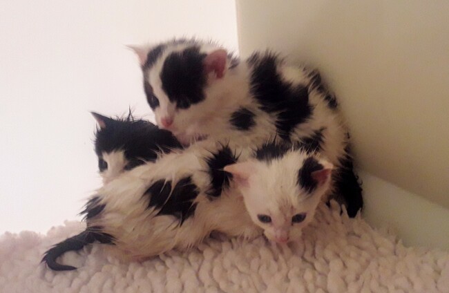The three kittens are fighting to recover from being left outside in the cold and rainy weather.