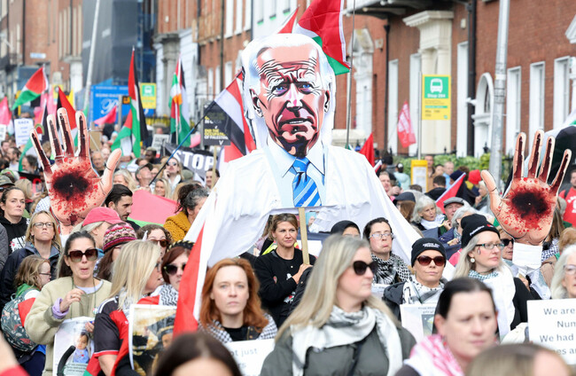 011Palestine Protests_90714148 A large crowd of protesters in Dublin during a event organised by the Palestine Solidarity Campaign, supported by over 160 Irish civil society groups, during a National Demonstration for Palestine. Leah Farrell / RollingNews.ie Leah Farrell / RollingNews.ie / RollingNews.ie