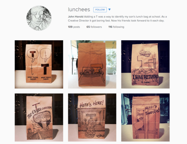 This cool dad has been delighting his son’s friends by drawing incredible pictures on his lunch bags.