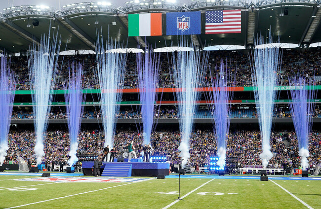 Myles Smith performs at half-time during the NFL International match at Croke Park in Dublin. Alamy Stock Photo