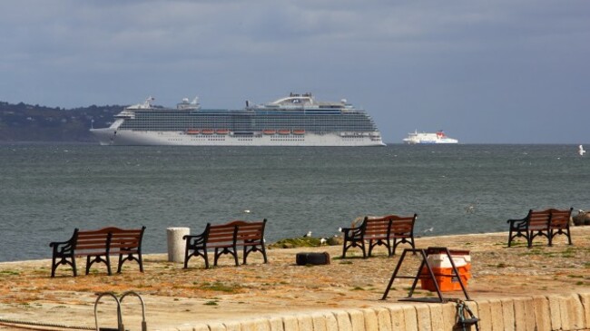 Following the popularity of the MSC Splendida yesterday, we had to share this photo sent to us by reader John Fahy today of the even larger Royal Princess at Bullock Harbour in Dalkey. Look at the adorable little Stena Adventurer following on behind.