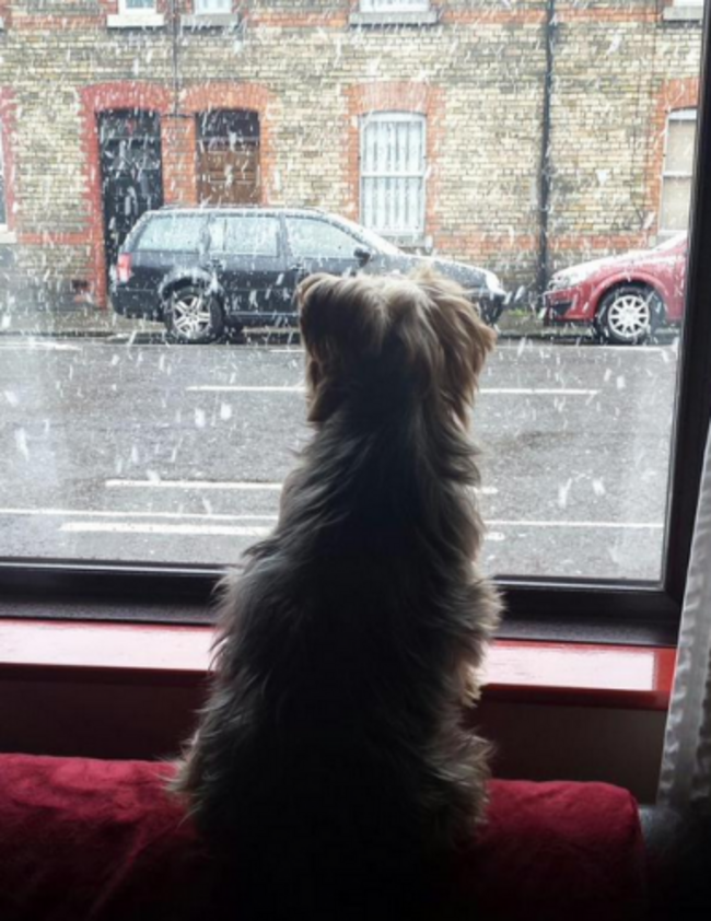 Mindy watching the snow come down in Stoneybatter, Dublin. Paul Dunphy Paul Dunphy