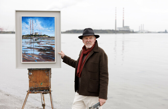 Dublin artist Gerard Byrne with his painting Always Sunday on Sandymount Strand, to be up for auction in support of Dublin Simon Community. Exhibition and online bidding open at Gormleys on 28 Nov. Marc O'Sullivan