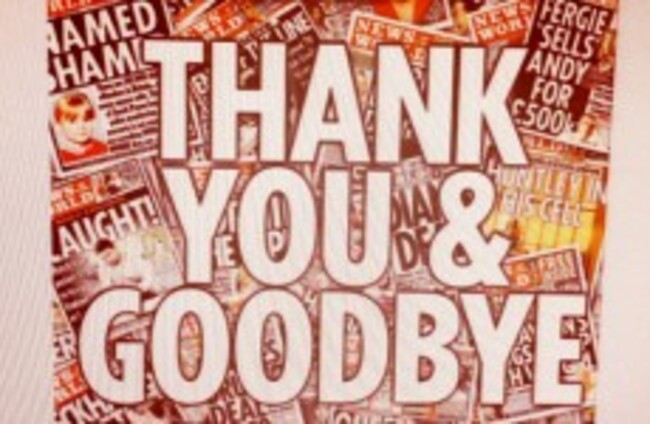 THE NEWS OF the World newspaper has printed its final edition today, bearing the headline “Thank You & Goodbye”.