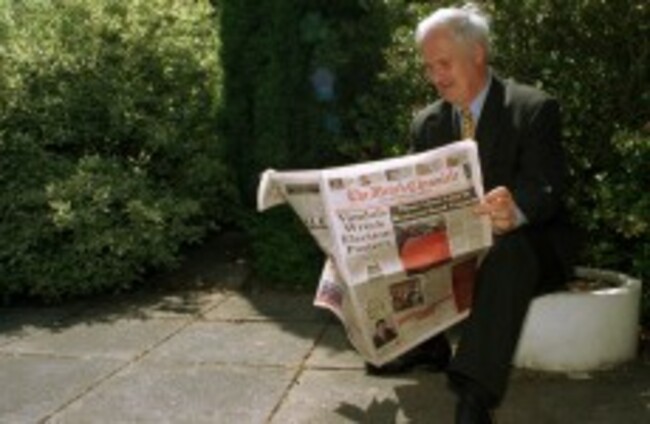 Then Taoiseach John Bruton reads the Meath Chronicle on the newspaper's 100 year anniversary in 1997 Graham Hughes/Photocall Ireland!