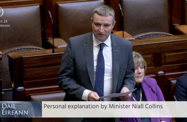 Niall Collins: 'No law broken' insists junior minister in address to Dáil