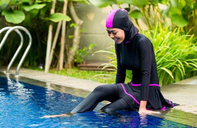 Burkinis are a rare sight on French beaches, where a small minority of Muslim women can be seen bathing in ordinary clothes and wearing headscarves.
