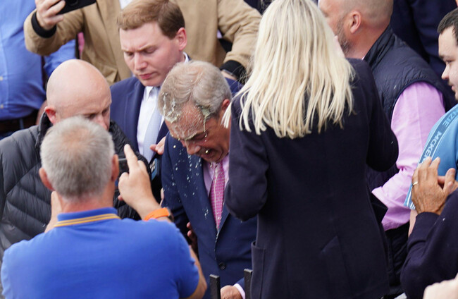 It’s not the first time Farage has faced the liquid wrath of the voters – he had a milkshake thrown on him while out canvassing in Newcastle in 2019.