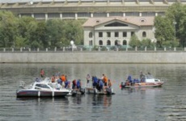 Rescue teams search the water at the site of this morning's sinking in Moscow. AP Photo/Mikhail Metzel