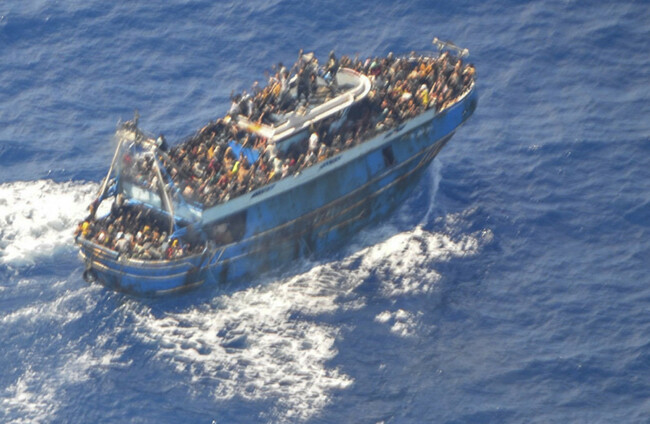 Scores of people on a battered fishing boat that later capsized and sank off southern Greece Hellenic Coast Guard/PA Images