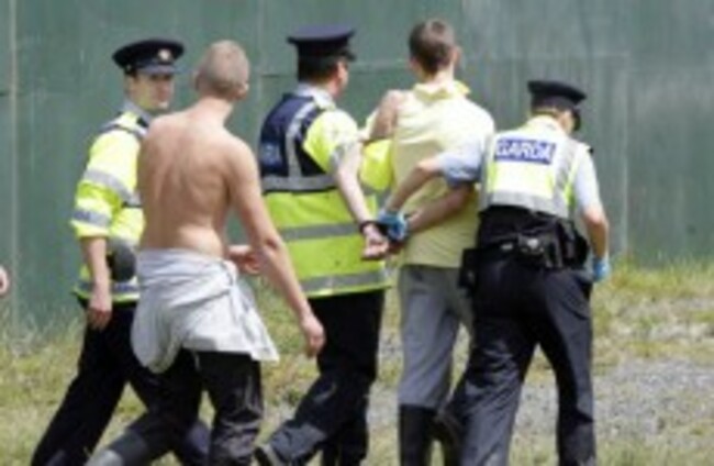 A festival goer is taken away by Gardaí at Oxegen 2011 Mark Stedman/Photocall Ireland