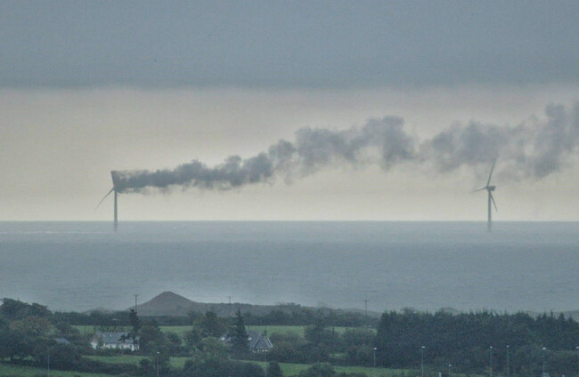 Just after 12 noon yesterday, a vessel passing the Arklow Bank reported seeing a wind turbine on fire, according to the Department of Transport.