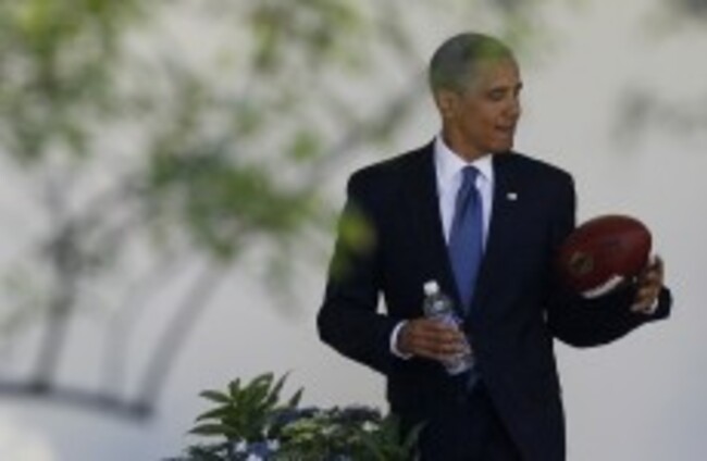 There'll be no time for footballs of any shape during President Obama's visit, according to a report this morning. Charles Dharapak/AP