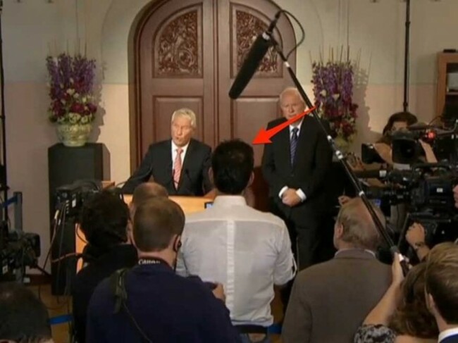 Here’s committee chairman Thorbjorn Jagland looking a bit taken aback by the statement: