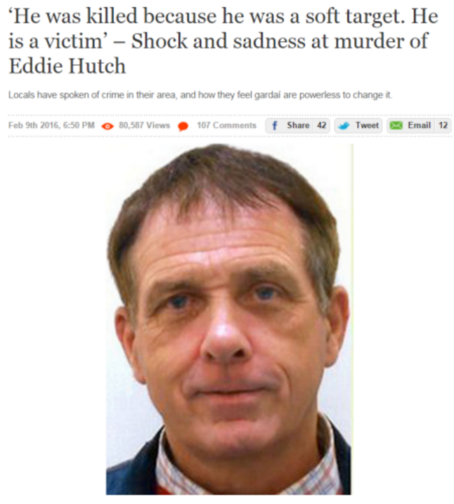 Last month, sources and those who knew Eddie Hutch described him as an easy target for the gang. He had not been involved in the gangland scene and those who knew him spoke of a good man, who “always had a smile for everyone”.