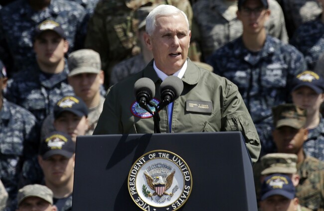 THE UNITED STATES will counter any North Korean attack with an “overwhelming and effective” response, Vice President Mike Pence vowed, as he stood on the deck of a massive American aircraft carrier docked in Japan.