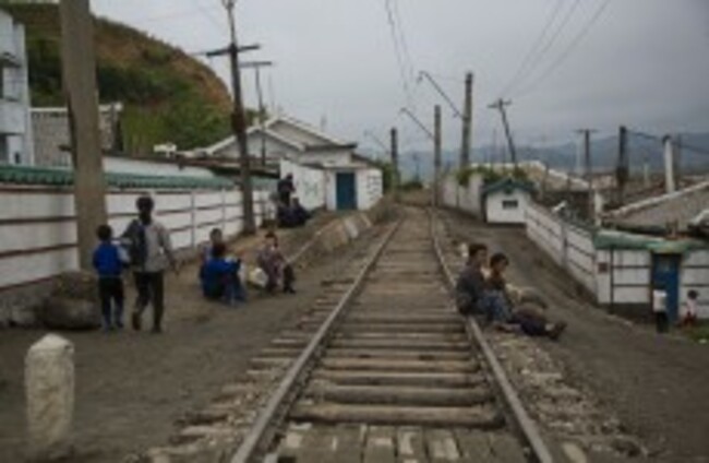 File Photo: North Korean people rest next to the railroad tracks in a town in North Korea's North Hamgyong province AP/Press Association Images