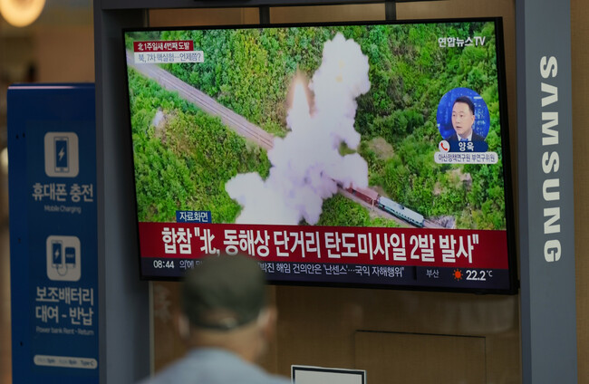 South Korea’s military said it had “detected two short-range missiles between 0645 and 0703 fired from the Sunan area in Pyongyang into the East Sea”, referring to the body of water also known as the Sea of Japan.