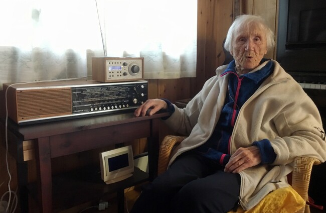 98-year-old Judith Haaland sits next to her decades-old radio set in Stavanger, Norway. AP/Press Association Images